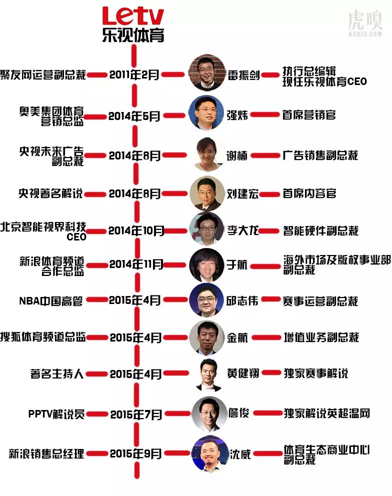在各家视频网站中,乐视体育起步较早,从电视台优秀人才中下手也属稳准狠,在雷振剑挖来刘建宏后,后者利用他在央视和体育圈的人脉挖来了不少专业体育人才,与其它互联网公司成立的体育公司相比,这是最大的不同。