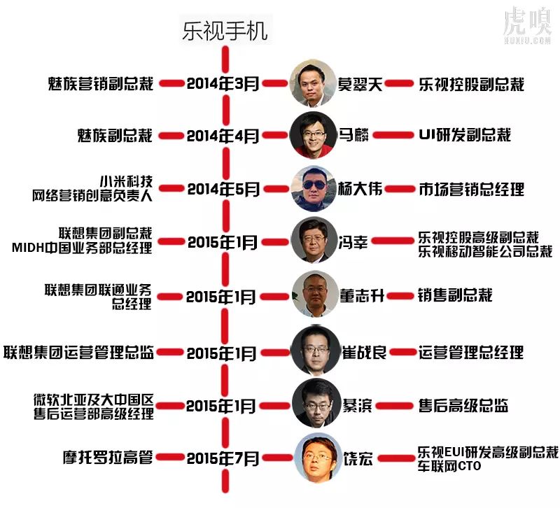 首先瞄中的是魅族——乐视率先挖来了原魅族的营销中心副总裁莫翠天,不久之后,又将另一位魅族副总马麟招至麾下。据悉,莫翠天是于2013年11月9日宣布离开魅族,同年12月便有北京股民爆料称其加入乐视,还从魅族拉了一票团队出来,负责手机研发。而曾领导研发了所有魅族旗舰级手机,同时领导推出了安卓深度定制系统Flyme OS的马麟,在2014年2月份离开魅族后不久,就在其微博等社交账号实现了全面的“乐视化”。现在,莫翠天任乐视控股海副总裁,主掌海外业务,马麟则任乐视手机UI研发副总裁。